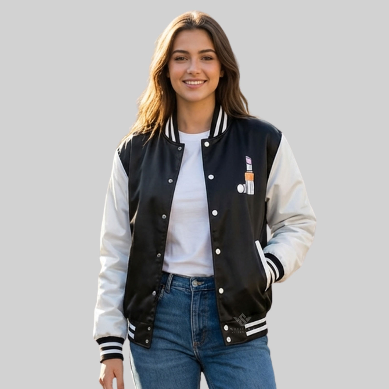 Work with a trusted manufacturer specializing in custom women’s satin varsity jackets and wholesale outerwear production.