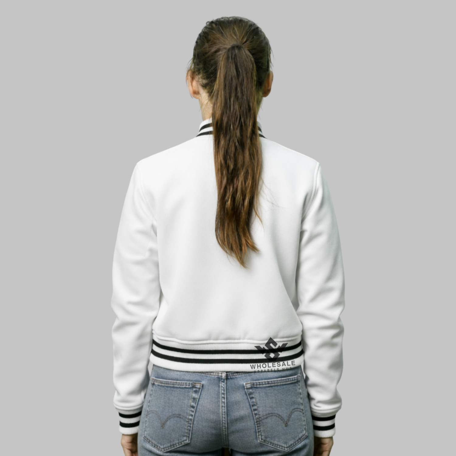 For brands and retailers seeking a stylish, modern, and wholesale-ready outerwear solution, this cropped varsity jacket delivers quality, durability, and visual appeal. Perfect for retail collections, branded apparel, or fashion lines, it balances classic varsity style with contemporary design.