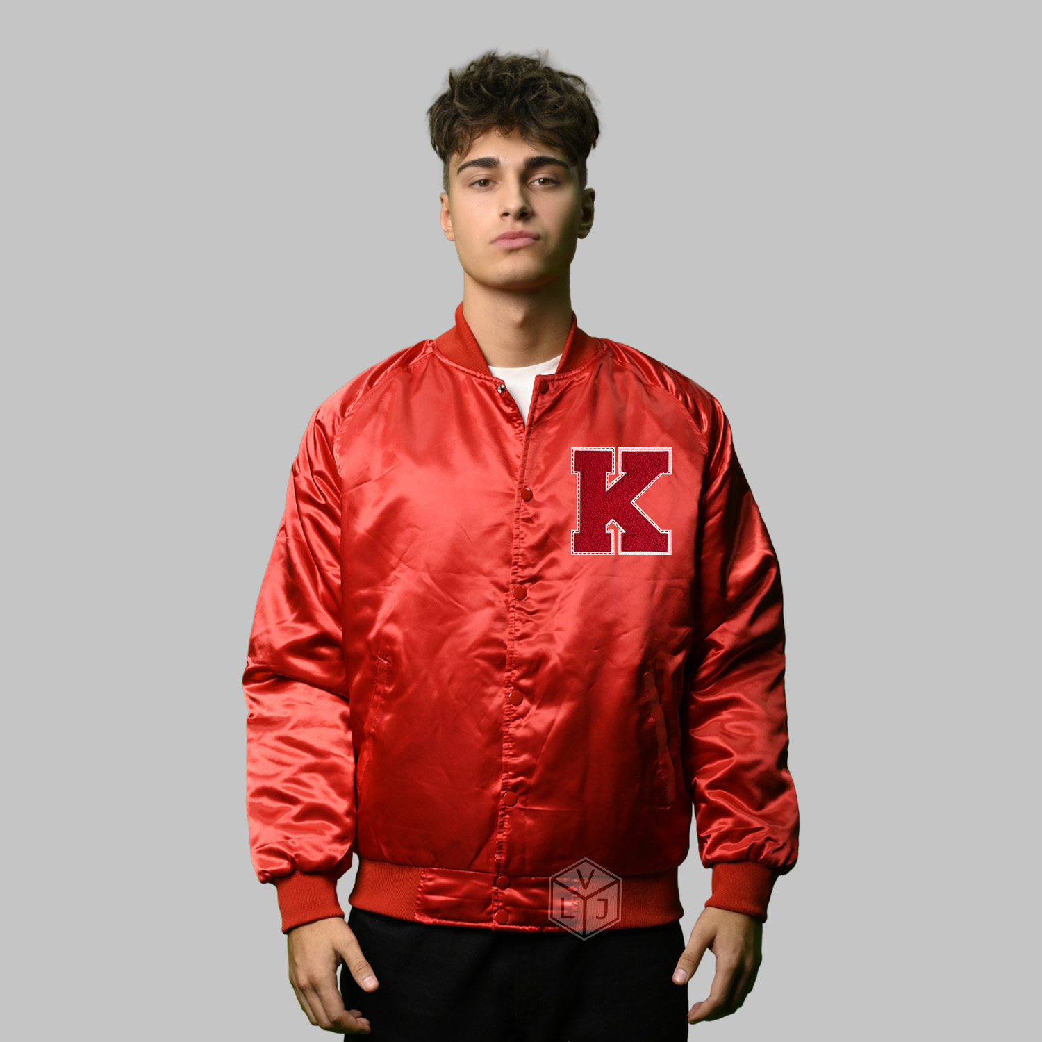 Custom Letterman Jackets are produced in the World’s best high-quality combination of materials, Polyester Satin body and Sleeves in Red. Buy this varsity jacket for women & men as it is or you can design your jacket through our design tools.