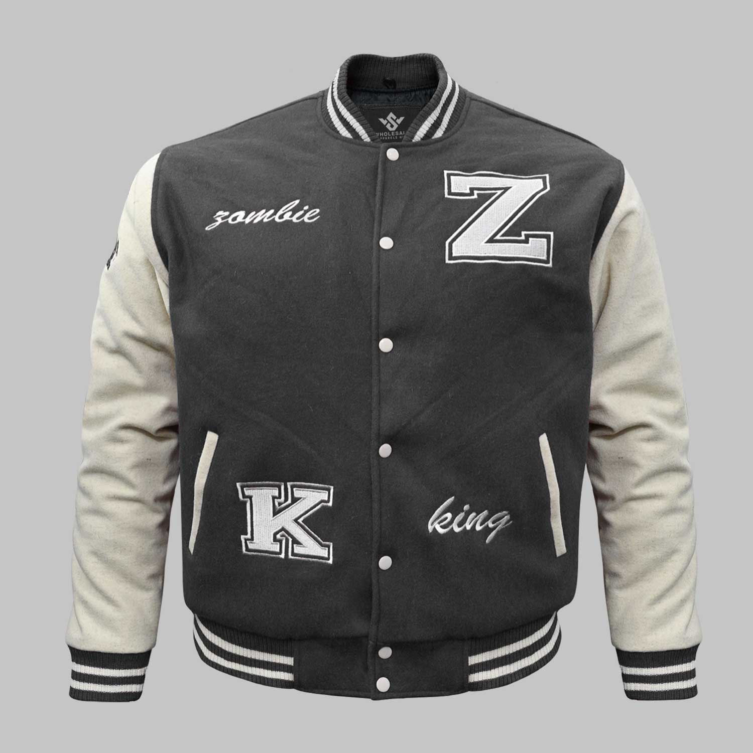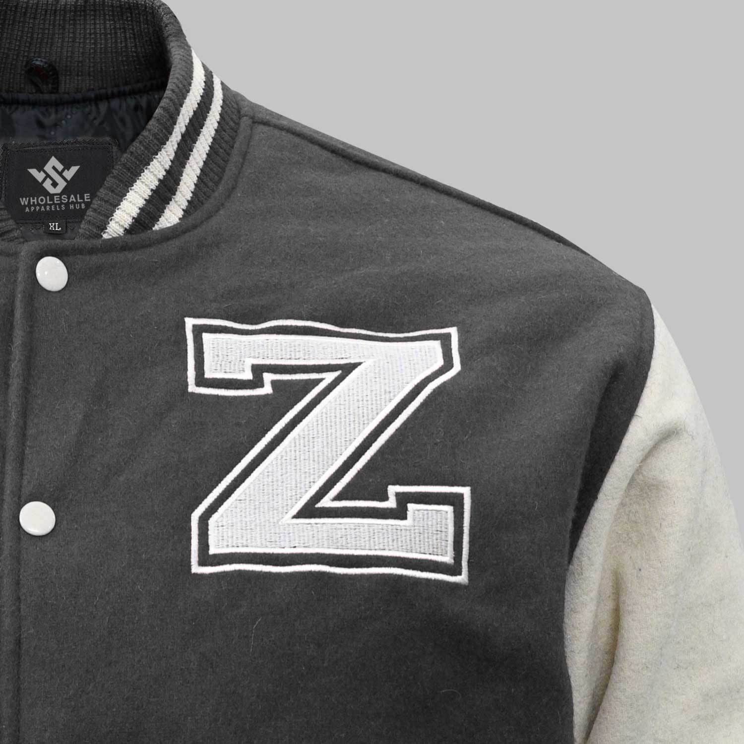 Whether you need 50 pieces or 10,000 pieces, our grey varsity jacket bulk supplier service is ready to support your expansion.