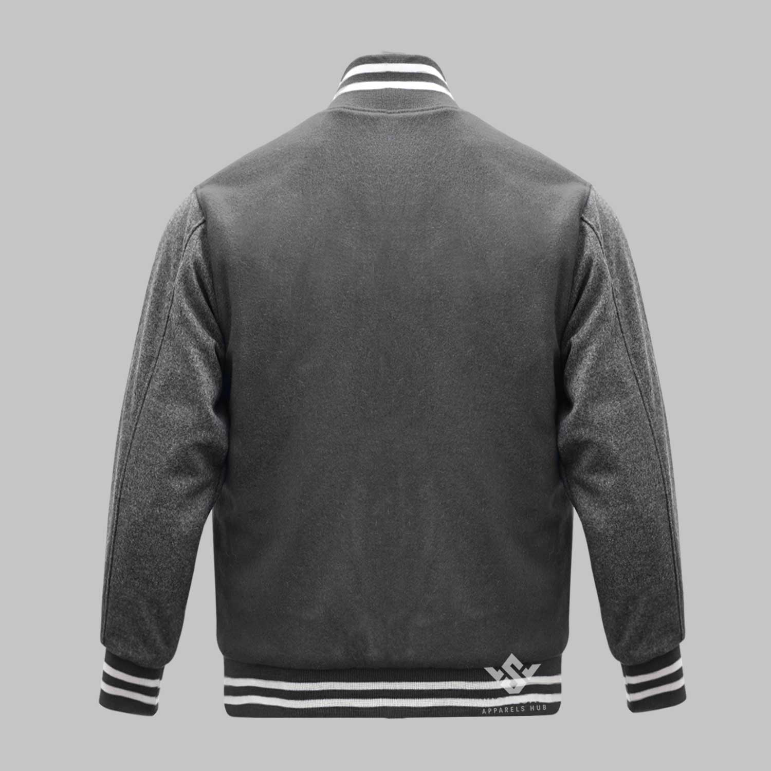 Upgrade your apparel collection with the premium Grey Varsity Jacket Wool today.