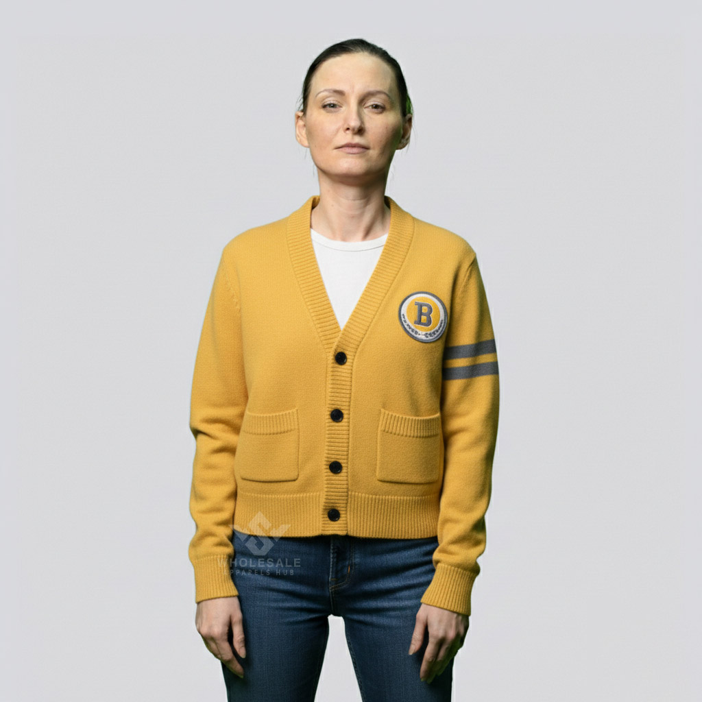 Every Letterman Cardigan Sweater is crafted from high-quality knit fabrics such as acrylic blends, cotton blends, or premium yarns. These materials are chosen for comfort, warmth, and long-lasting wear.