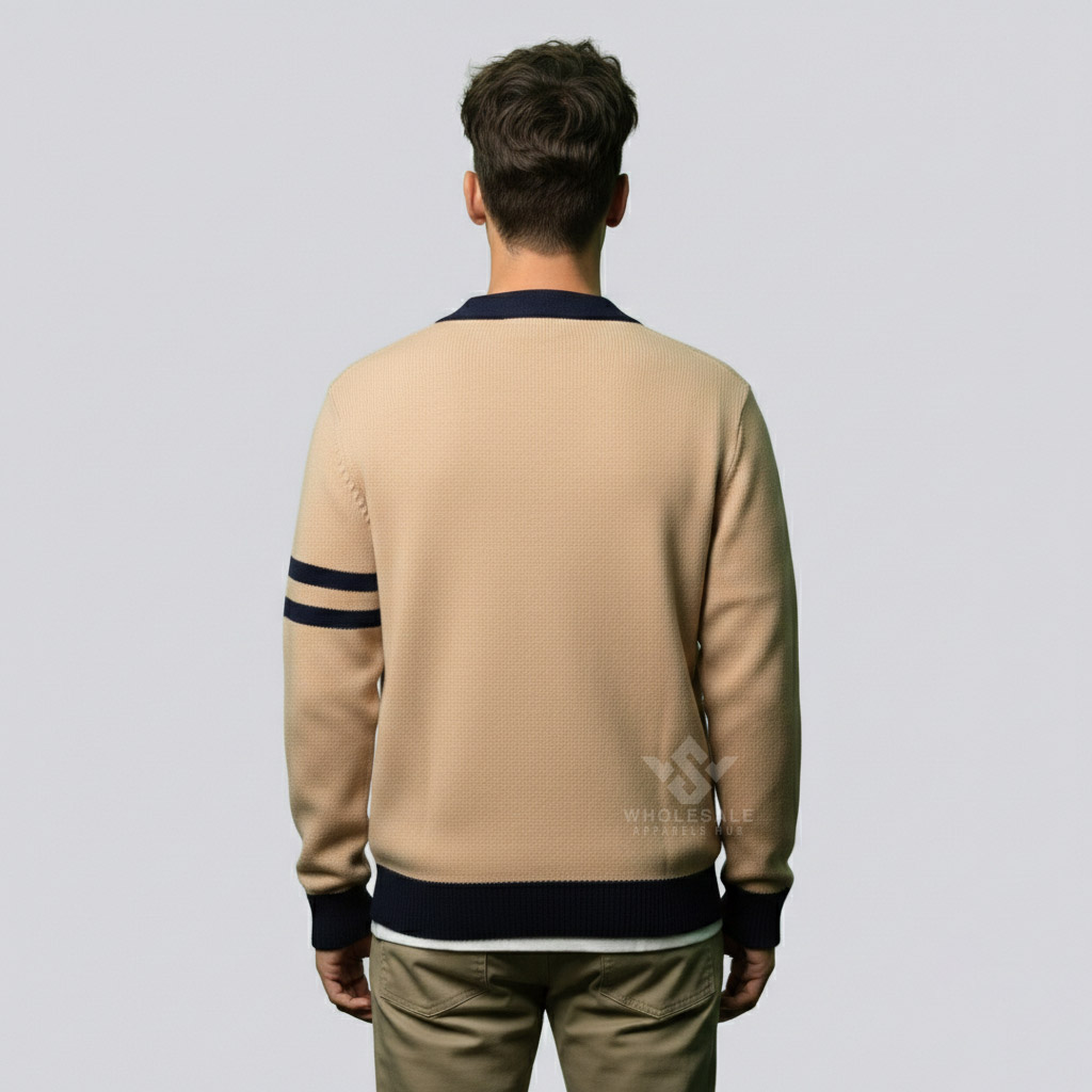 Every lightweight varsity cardigan is crafted using carefully selected knit fabrics such as cotton blends, acrylic yarns, or soft wool blends. These materials are chosen to ensure breathability, softness, and long-term comfort.