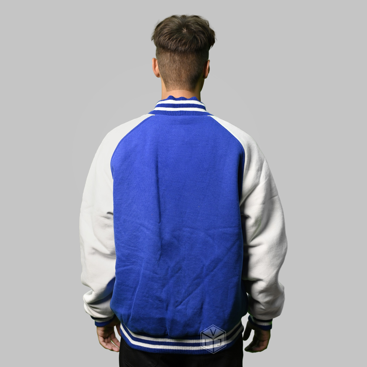 Men Letterman Jacket is produced in the World’s best high-quality combination of materials, Cotton Fleece body in royal blue, and sleeves color in white. Buy this varsity jacket for men/women as it is or you can design your own jacket through our design tools.