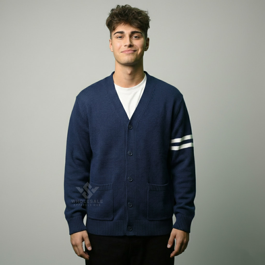A mens letterman style cardigan offers long-term value by combining timeless varsity design with durable knit construction. Unlike trend-driven pieces, this cardigan maintains relevance year after year while providing consistent comfort.