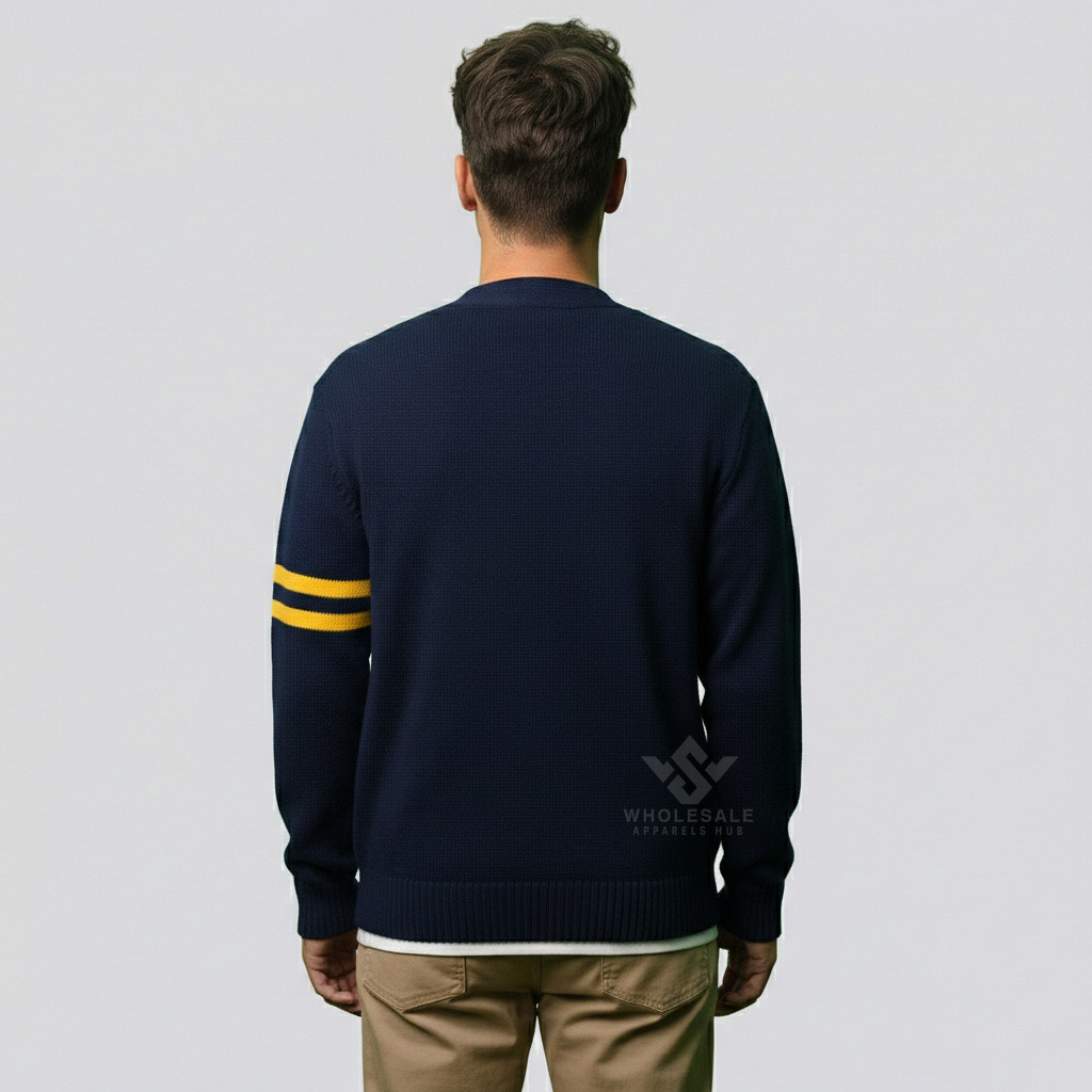 What defines a true Mens Varsity Style Sweater is its varsity-inspired detailing. Letterman-style elements such as patches, embroidery, or symbolic motifs give the sweater its distinctive identity.