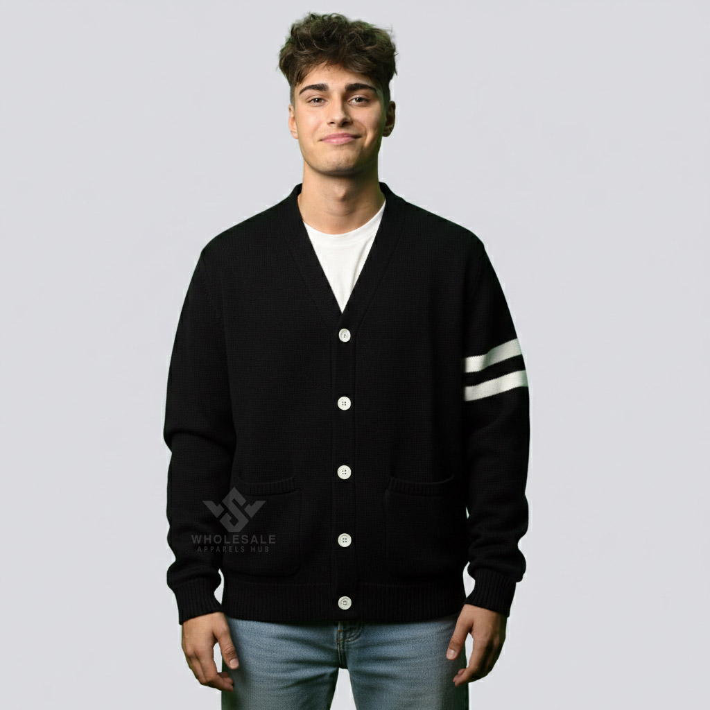 Our varsity cardigan for mens is made using high-quality knit materials such as acrylic or blended yarns that provide durability, softness, and warmth. The fabric is engineered to hold its shape, resist fading, and stay comfortable throughout the day.