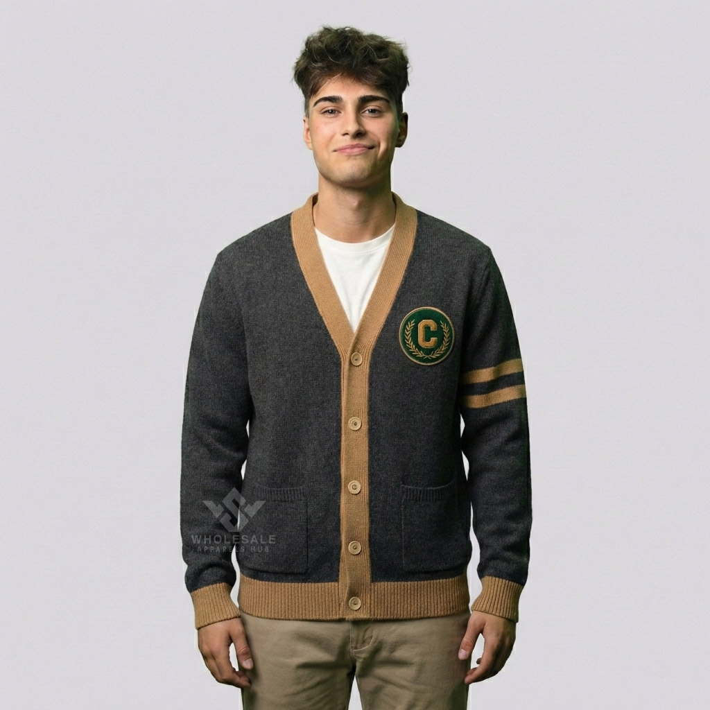 Elevate your wardrobe with a varsity inspired sweater that fuses classic collegiate heritage with modern knitwear comfort. Designed for everyday wear and layering, this sweater features letterman-style detailing, premium fabrics, and a versatile fit for both men and women. Ideal for campus fashion, streetwear, and team apparel, it allows full customization with patches, embroidery, and color combinations.