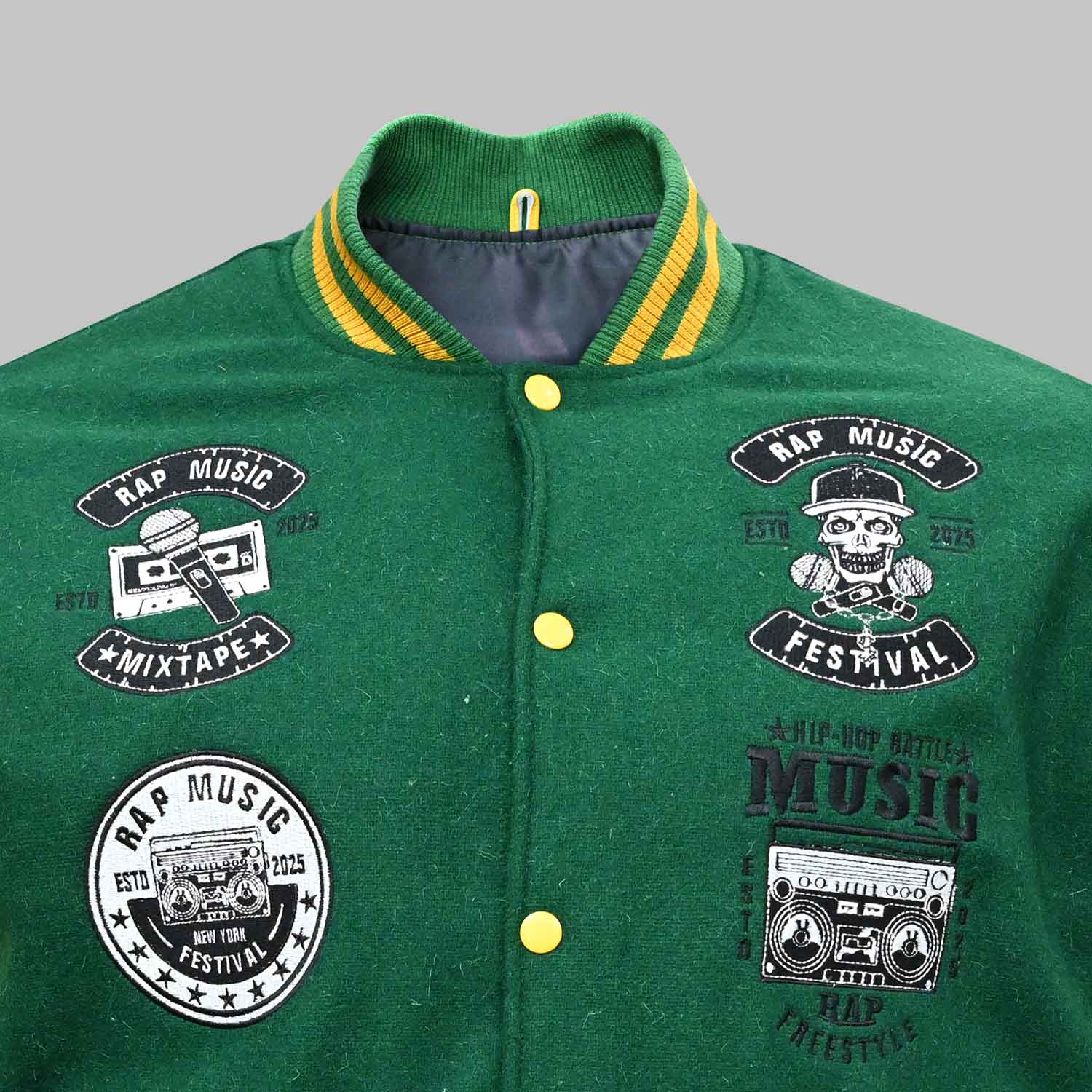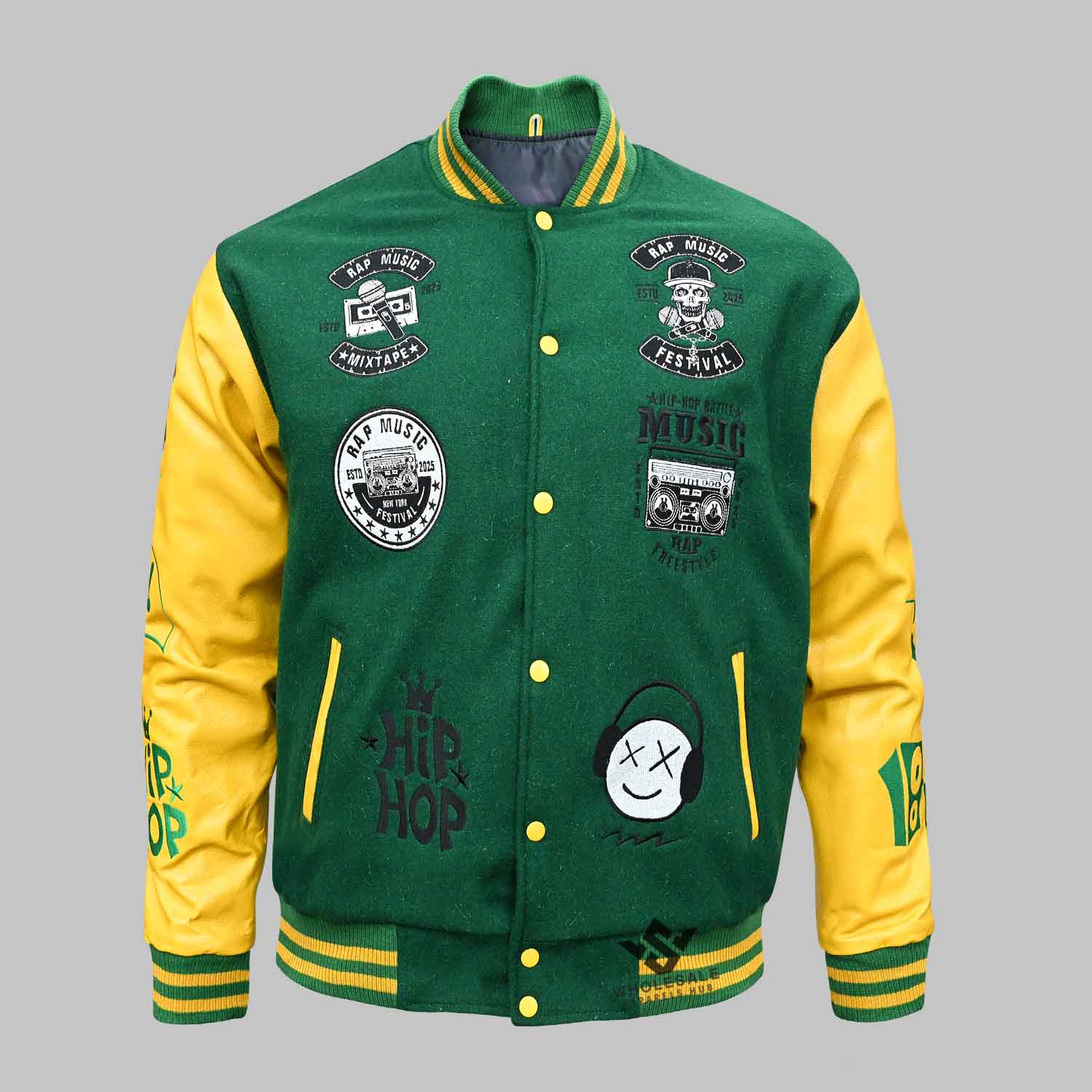 These features ensure that each jacket not only looks authentic but also withstands frequent wear, making them perfect for wholesale distribution to schools, clubs, and retailers.