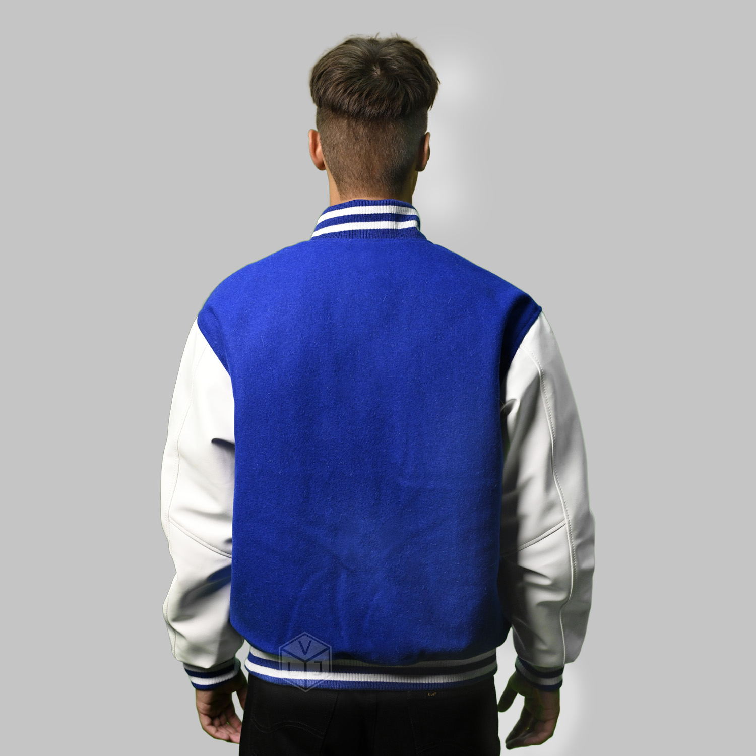 Varsity Jacket for Men are produced in the World’s best high-quality combination of materials, wool body color blue and sleeves color in white. Buy this varsity jacket for women as it is or you can design your own jacket through our design tools.