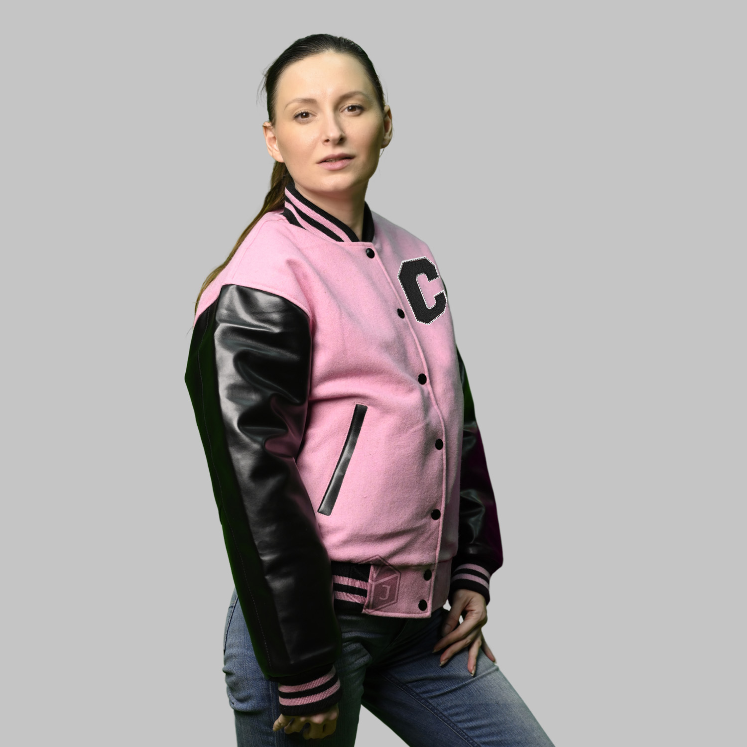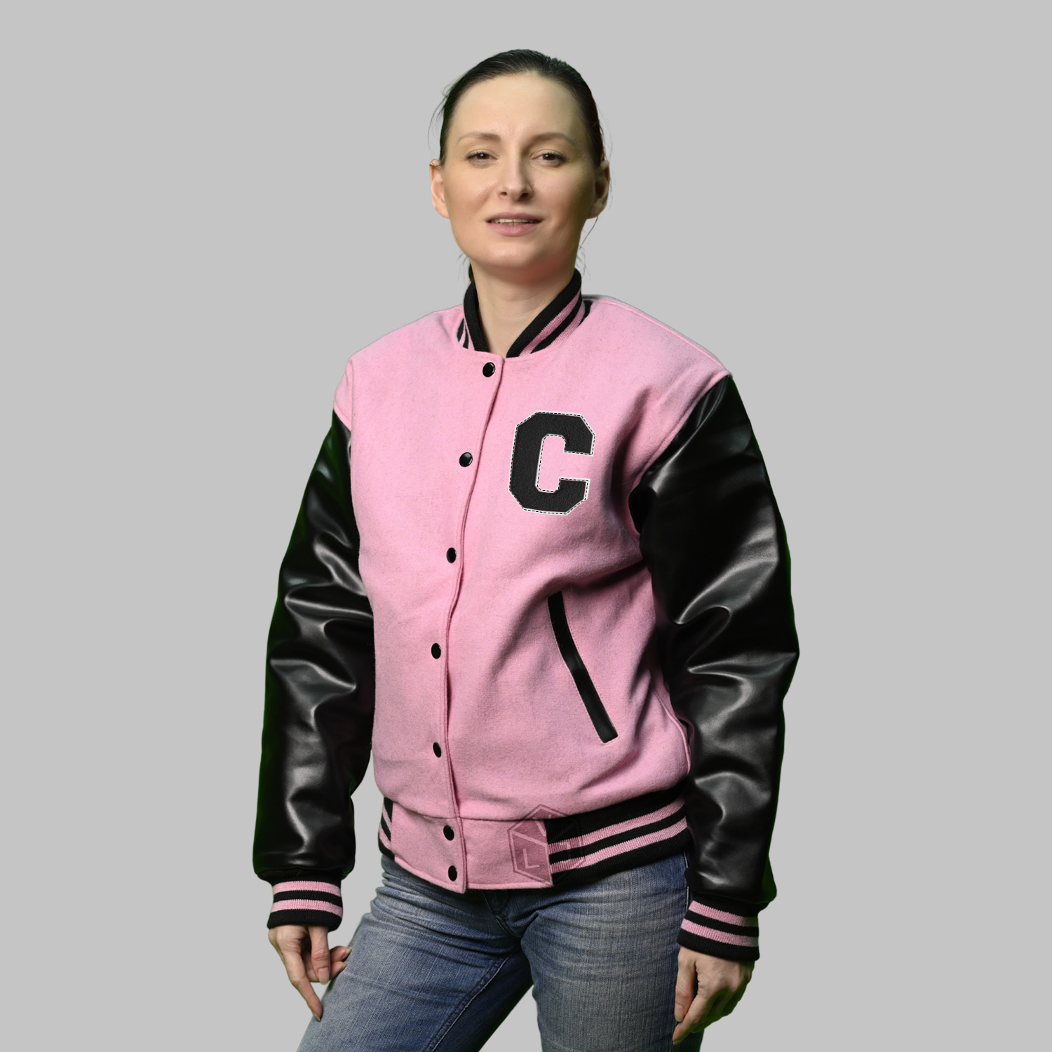 Varsity Jackets Pink are produced in the World’s best high-quality combination of materials, wool body color pink and sleeves color in black. Buy this varsity jacket for women as it is or you can design your own jacket through our design tools.