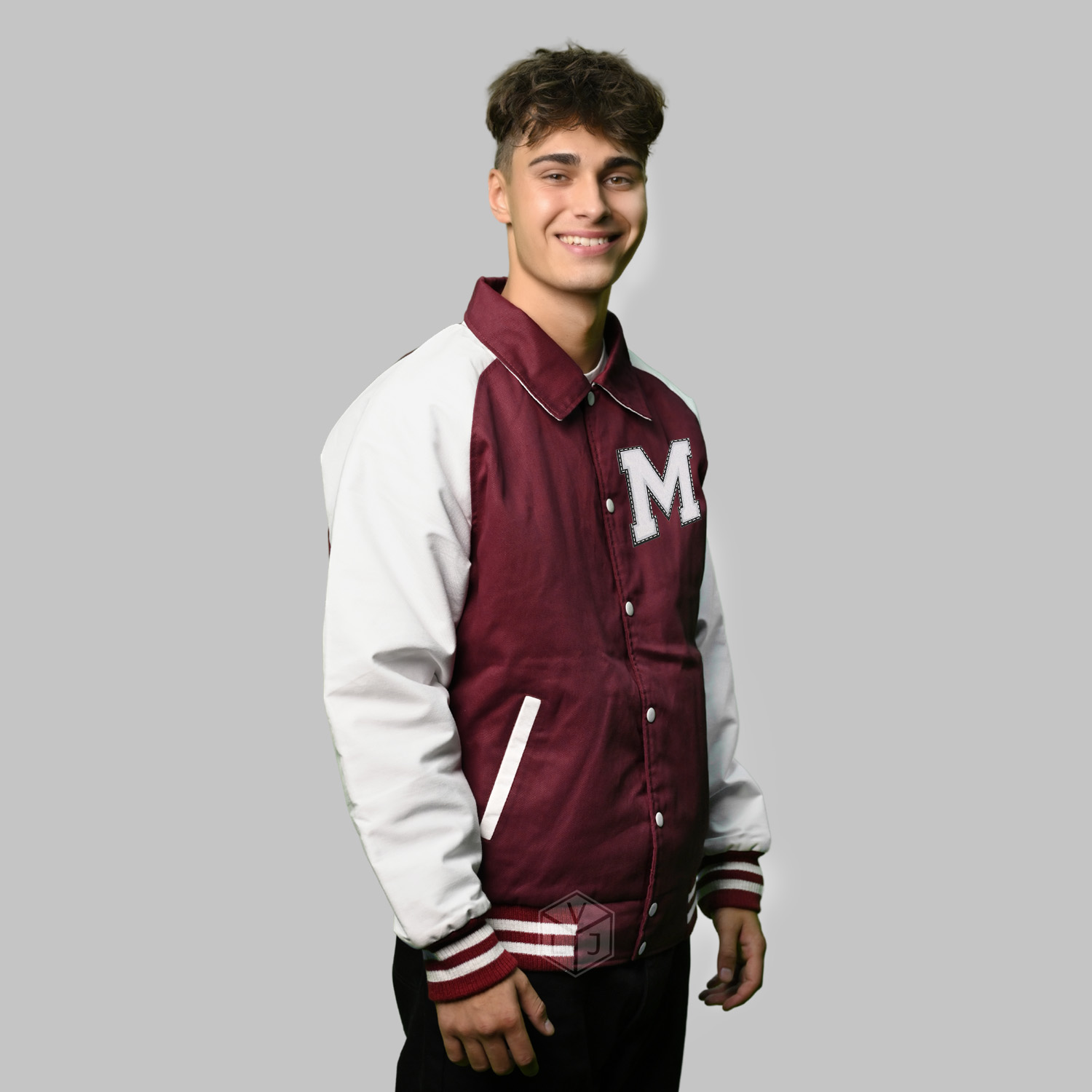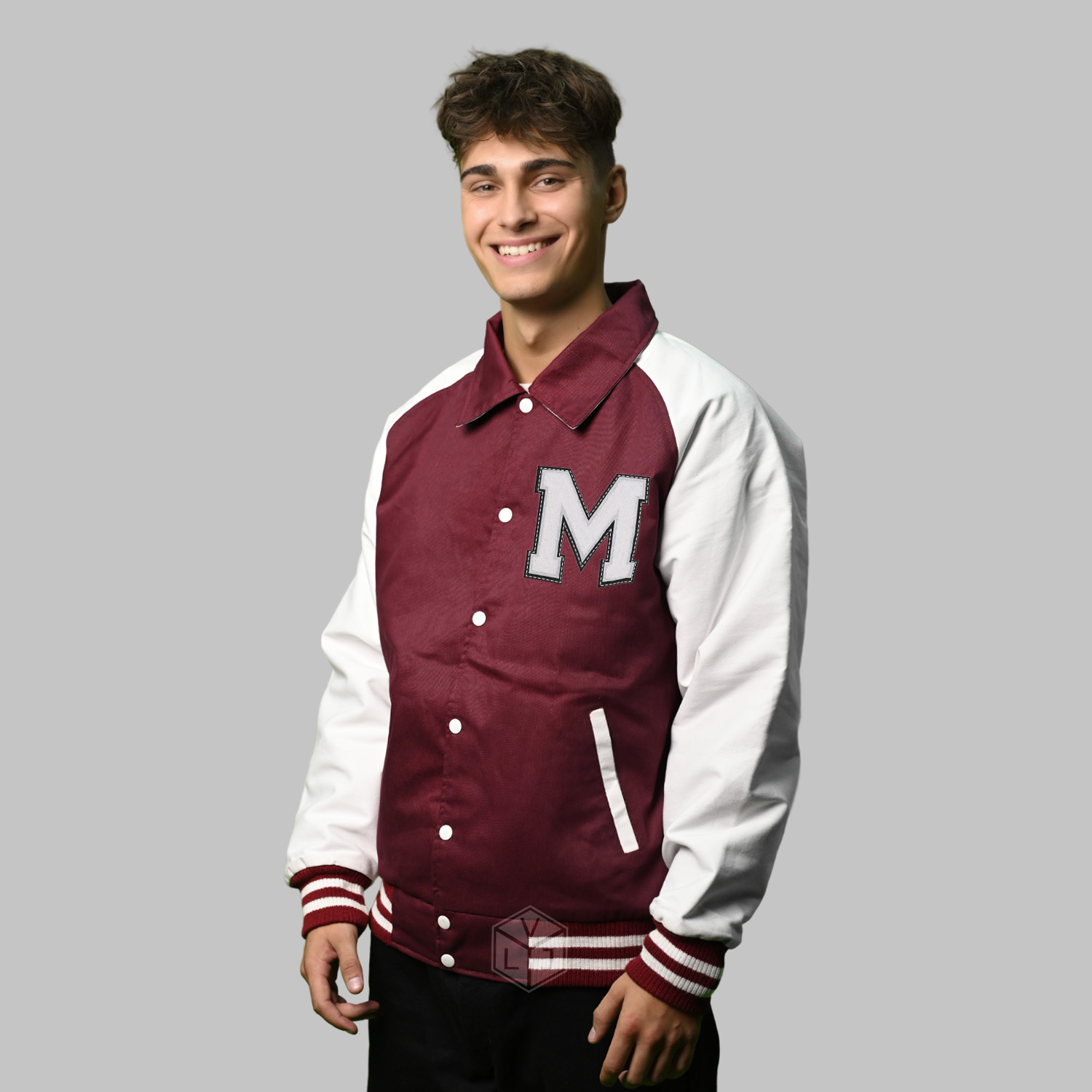 Varsity Jackets Raglan is produced in the World’s best high-quality combination of materials, Twill Cotton body burgundy, and sleeves color in white. Buy this varsity jacket for men/women as it is or you can design your jacket through our design tools.