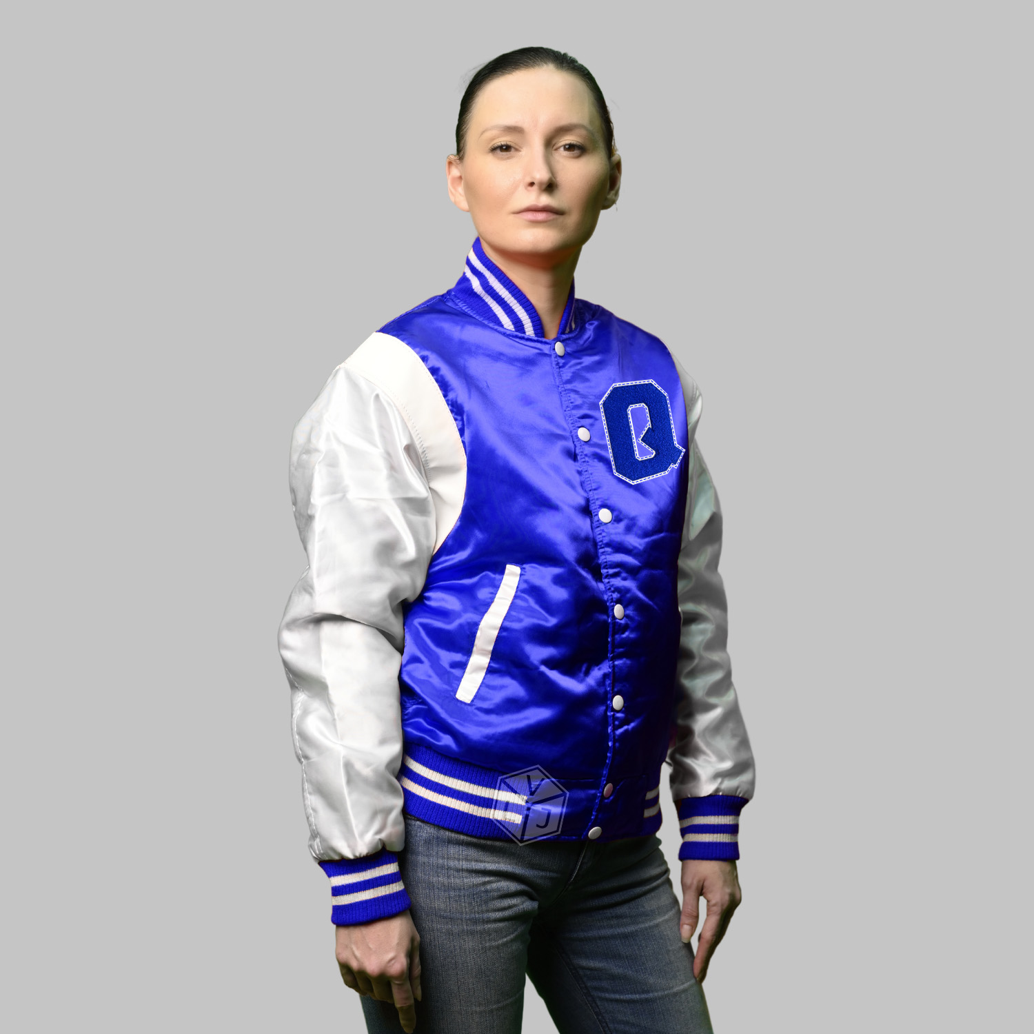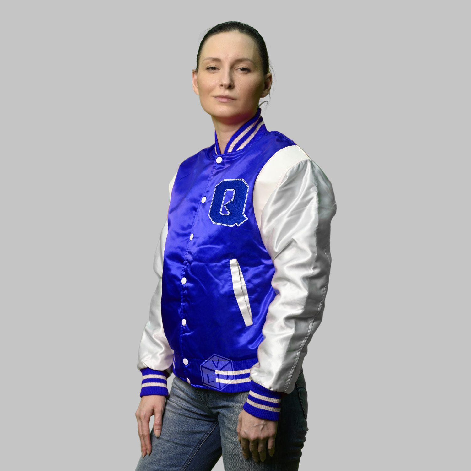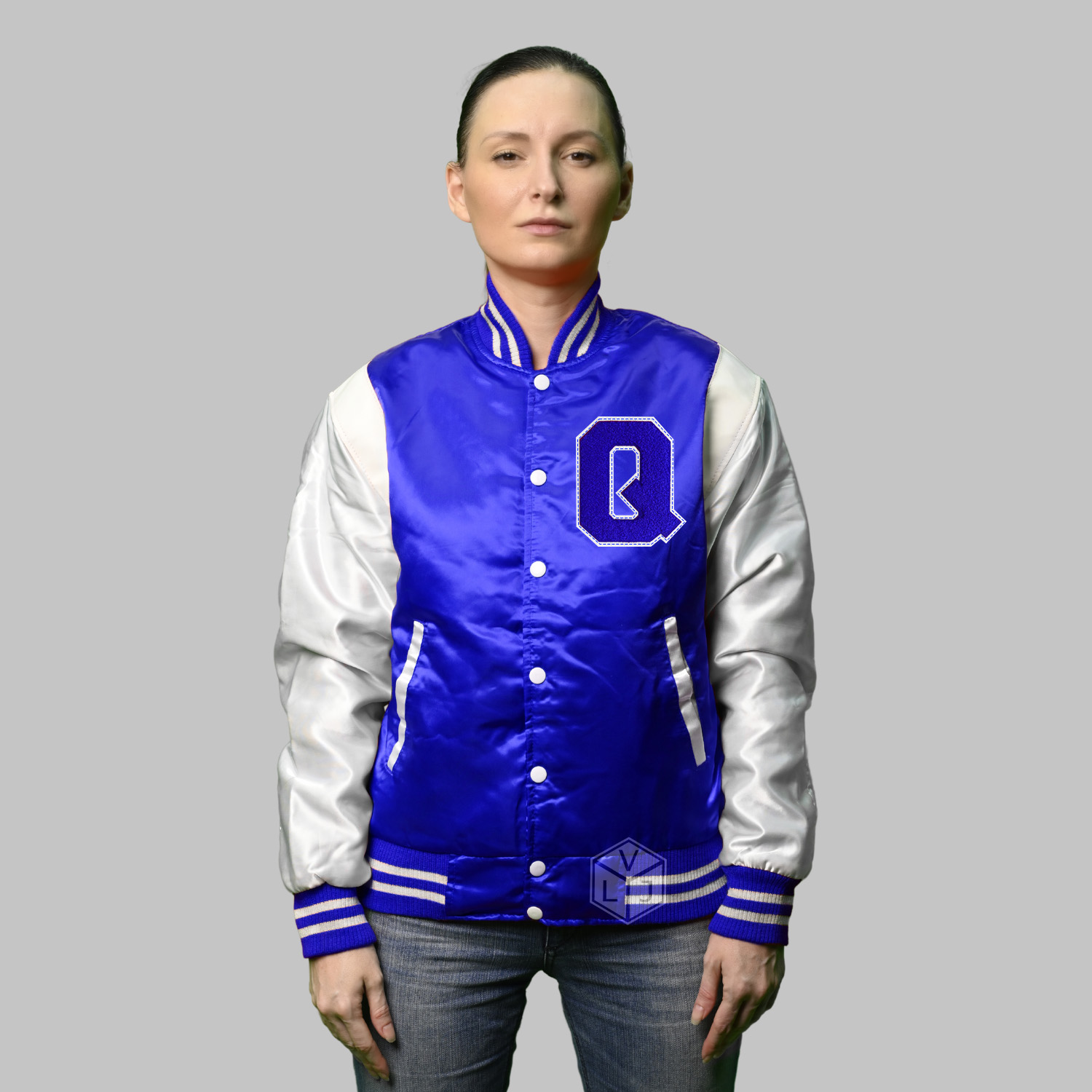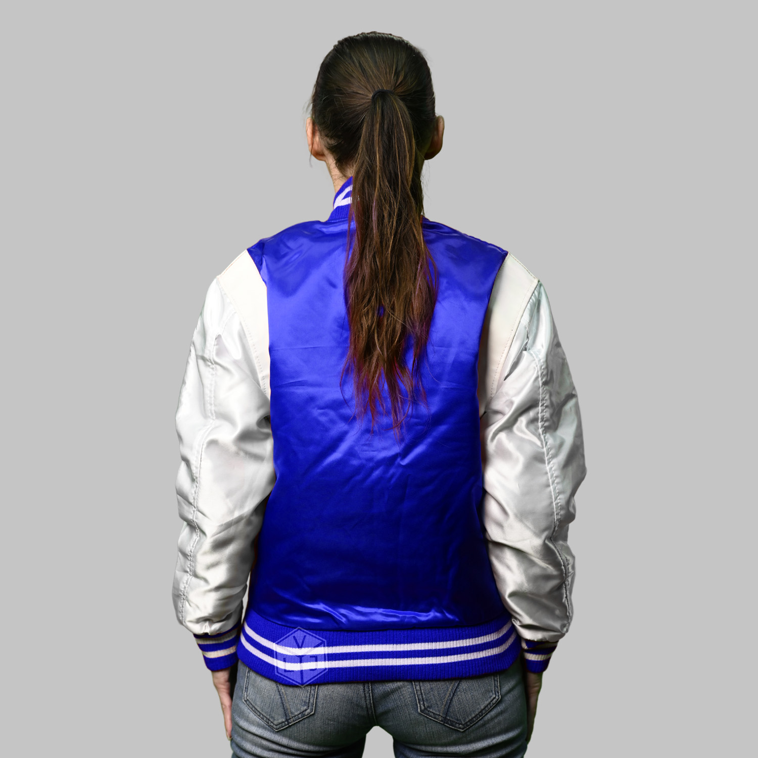 Varsity Jackets Satin is produced in the World’s best high-quality combination of materials, Polyester Satin body in Royal blue and Sleeves in white. Buy this varsity jacket for Men & Women as it is or you can design your jacket through our design tools.