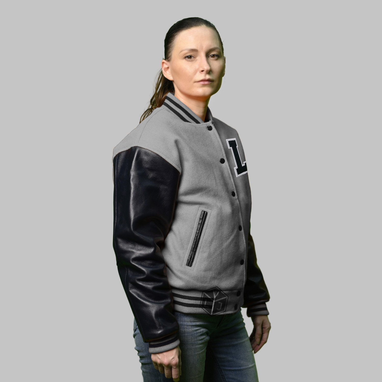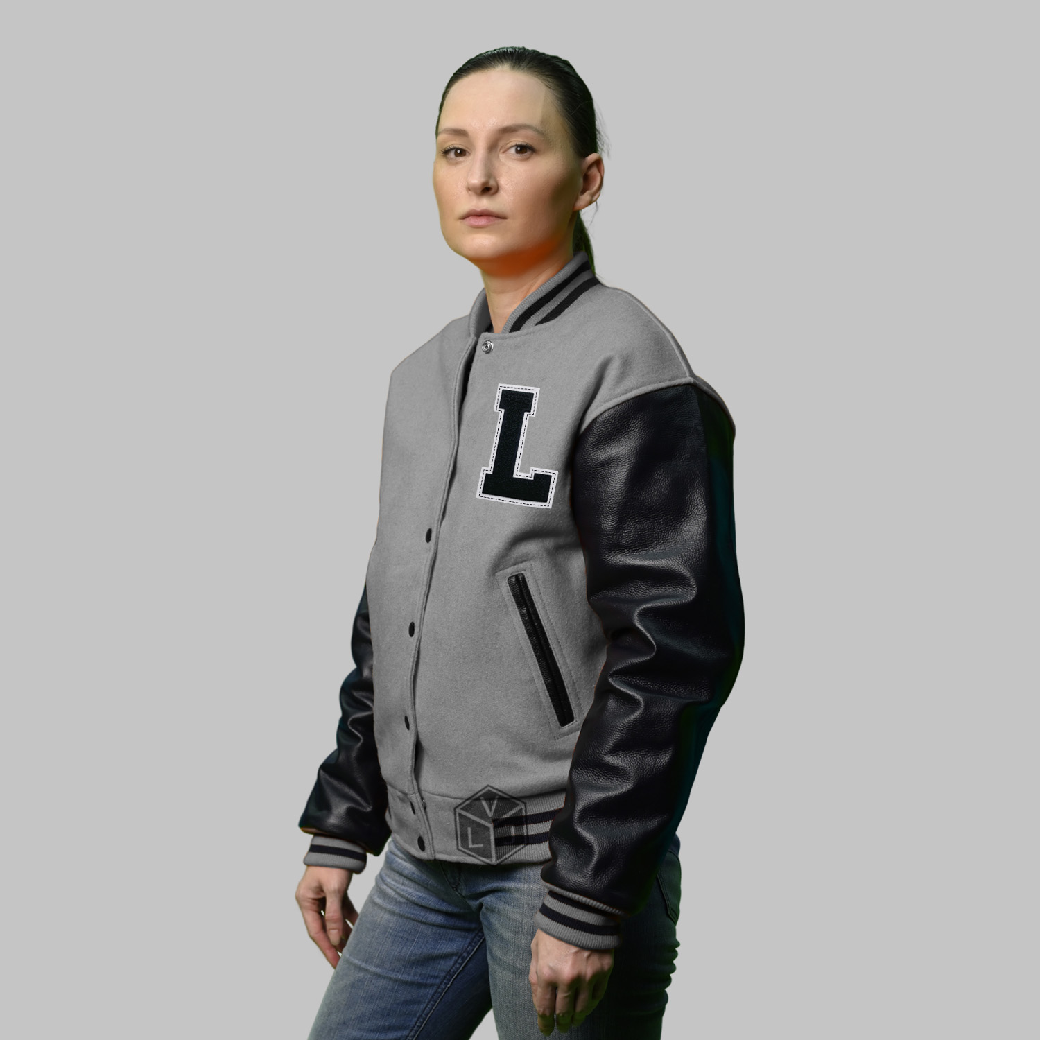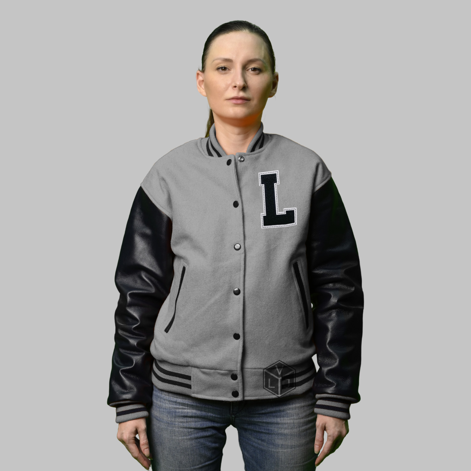 Varsity Jackets Wool Leather produced in World’s best high quality combination of materials, wool body color grey and sleeves color black. Buy this varsity jacket for women as it is or you can design your own jacket through our design tools.