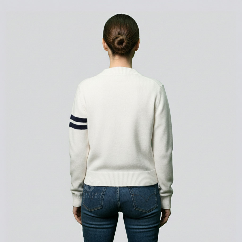 Varsity style cardigans are available in a range of classic and modern color combinations, allowing them to suit both traditional and contemporary tastes. From neutral tones to bold varsity contrasts, the design can be styled to match individual preferences or group themes.