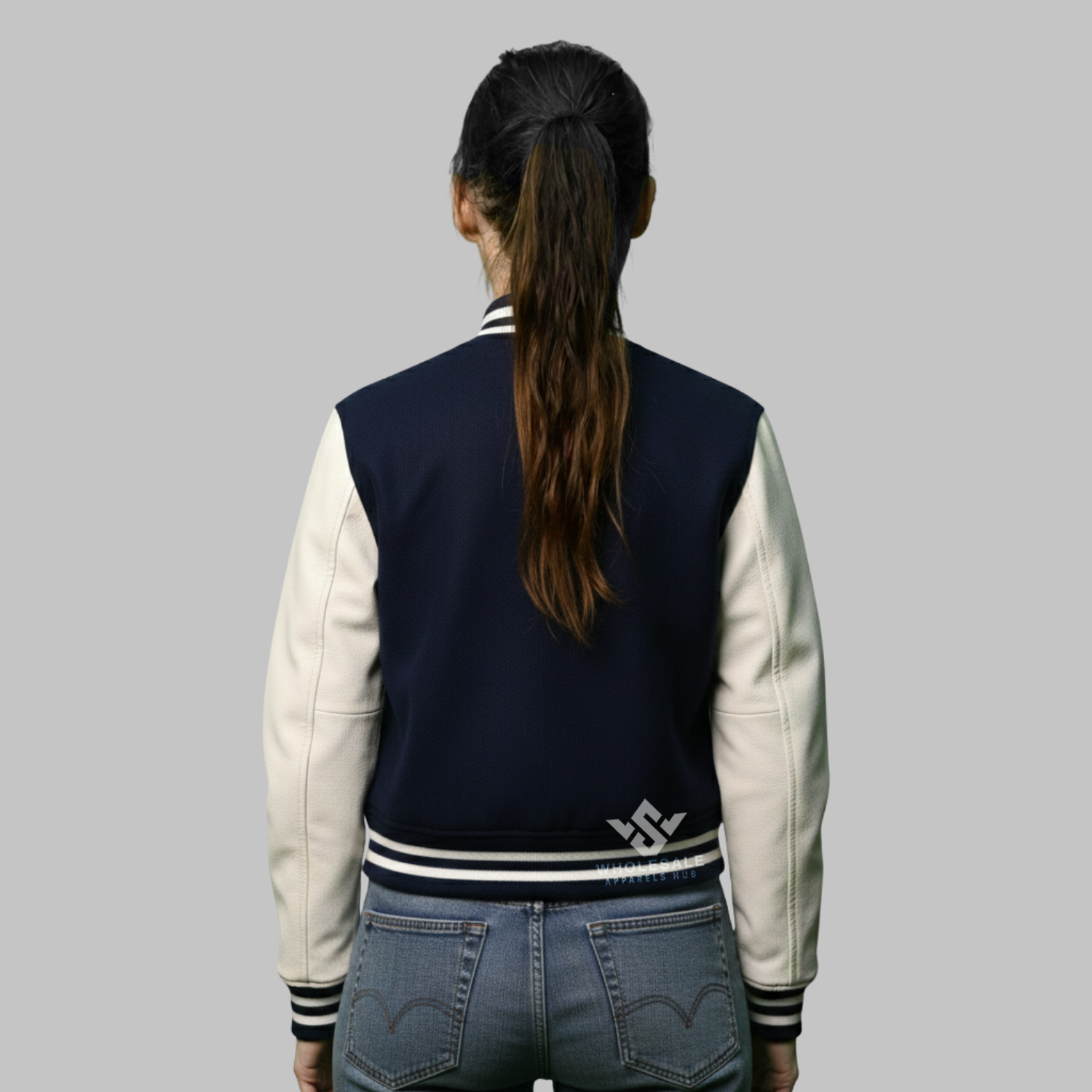 Whether you’re launching a women’s streetwear line or sourcing premium outerwear, the Women Cropped Varsity Jacket delivers standout style, comfort, and customization flexibility.