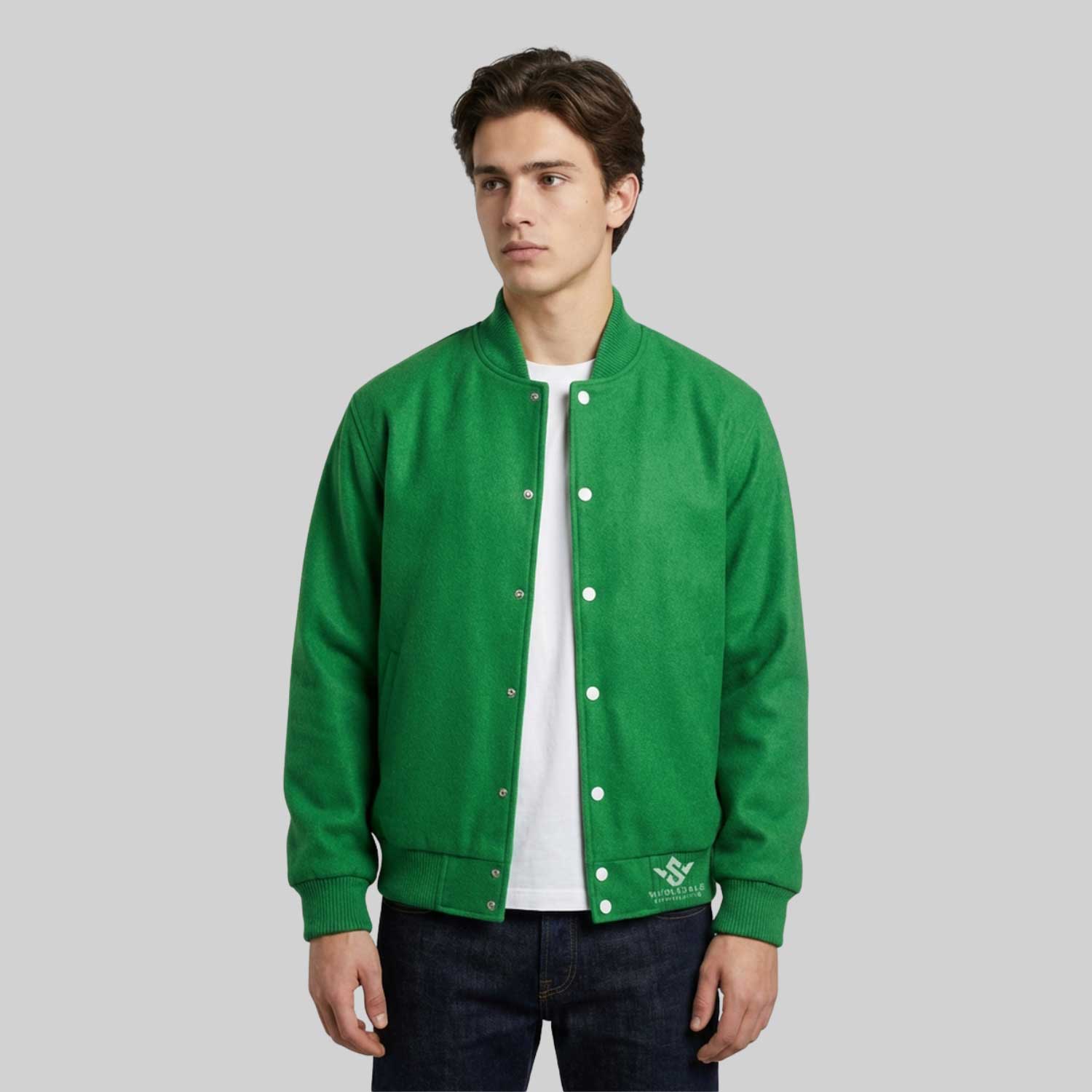The Wool Green Varsity Jacket is a premium outerwear piece designed for style, warmth, and durability. Crafted from high-quality wool, it delivers a bold green varsity look with a modern fashion appeal. Ideal for wholesale buyers, this jacket supports full customization and private-label branding. Perfect for streetwear brands, retail fashion, and bulk production orders.