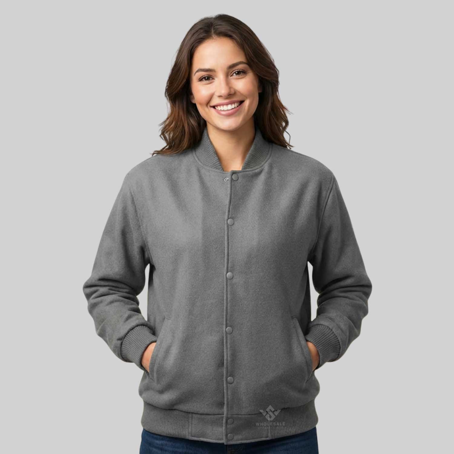 Our Wool Grey Varsity Jacket is designed for businesses seeking quality and style.